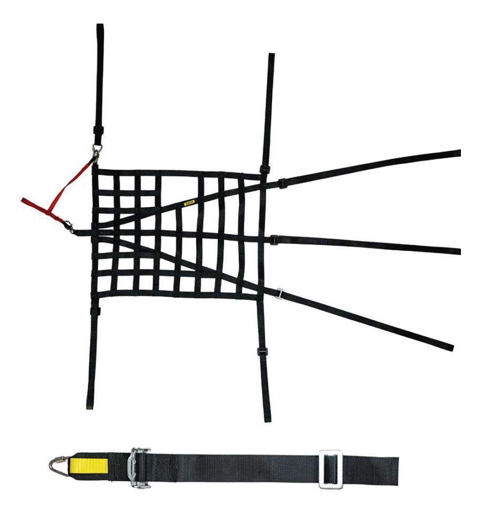 Помимо двух быстросъемных механизмов, дверная сетка имеет шесть точек крепления: три для основной центральной сетки, одна для верхнего элемента и две для нижнего элемента (все точки крепления обхватывают каркас безопасности).