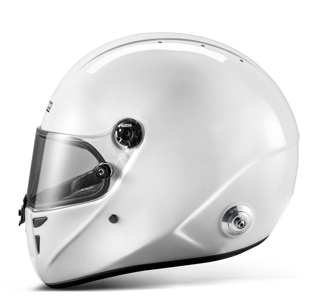 Шлем сертифицирован по стандартам FIA 8859-2024/SNELL2025. Корпус из стекловолокна, усиленный одним слоем углеродного волокна для оптимизации соотношения производительности и стоимости шлема. Новая система фиксации визора, гарантирующая максимальную защиту водителя при столкновении и сохранение его плотной посадки. Корпус двойного размера и пенополистирол с вентиляционными отверстиями. Корпус доступен в матовом черном или глянцевом белом цвете. Съемная и моющаяся внутренняя подкладка (доступна в красном и черном цвете). Подготовка для установки системы питья. Подготовка для установки системы внутренней связи (микрофон + наушники). Визор, омологированный FIA, с 3 положениями регулировки. Зажим Hans.